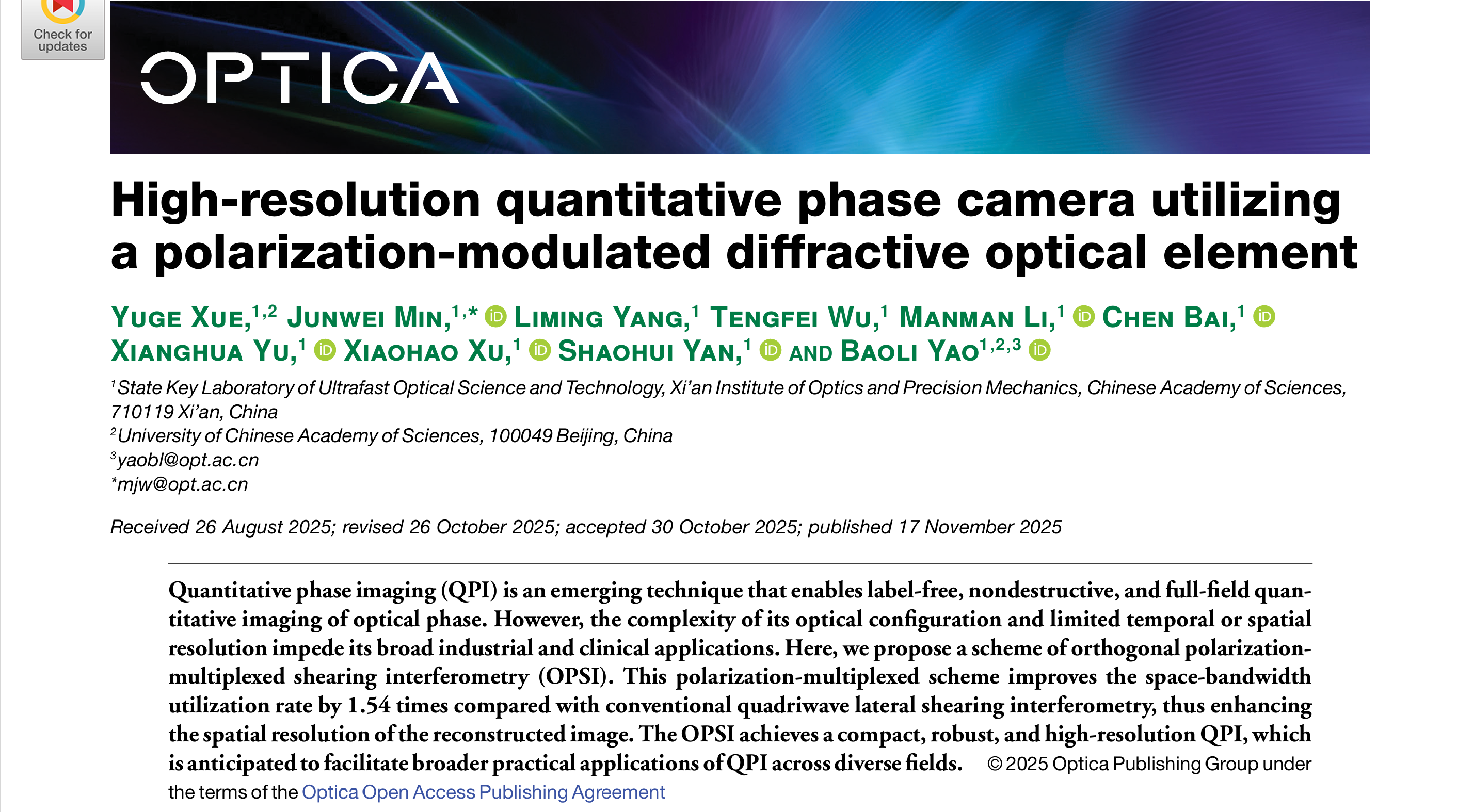 • 中國科學院西安光機所在高分辨定量相位成像領域取得重要進展